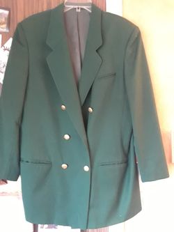 Women's green double-breasted suit jacket with gold buttons. Two front pockets. Wool with shell lining.$8Glenview, IL