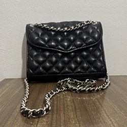 Rebecca Minkoff Black Leather Shoulder Bag Purse, Quilted, silver m shoulder strap $40Long Beach, CA