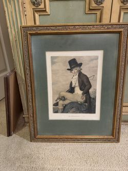 Vintage Hand Painted Etching Or Lithograph Nicely, Framed With Moss Green Velvet Porter And Gold Frame. This Piece Is A Classic And Would Add A Greeat$55Temecula, CA