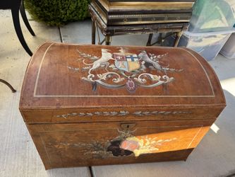 Hand painted leather arch top trunk with family crest motif$150Temecula, CA