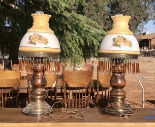 Set Of Two Wooden Table Lamps with Milk Glass Hurricane Shade with Flowers & Chimney$80Hesperia, CA