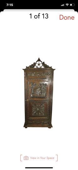 19c Antique French Breton Carved Wood Figural Canoter Armoire Wardrobe$1,950Port St. Lucie, FL