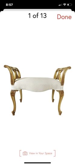 Vintage Mid Century French Carved Wood Ivory Upholstered Vanity Bench $325Port St. Lucie, FL