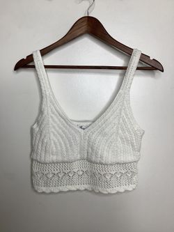 Hollister Women’s White V-neck Crotchet Knitted Crop Top Tank Top Bralette Size L$20Riverside, CA