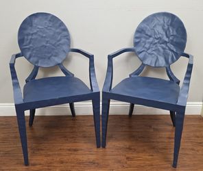 ++ *RARE* PAIR OF MADE GOODS DAPHNE - FRENCH LOUIS XV VIBE - HAMMERED METAL ARMCHAIRS IN NAVY BLUE! ++$1,450Aliso Viejo, CA