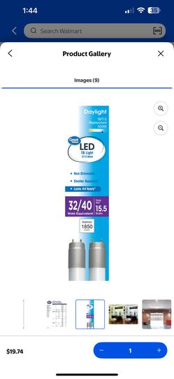 (2 pack) Great Value LED Tube, 17 Watts (32W/40W Equivalent) T8/T12 Replacement Lamp G13 Base, Non-Dimmable, Daylight, 48-inches, 2 tubes$10Riverside, CA