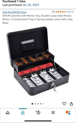 INFUN Cash Box with Money Tray, Durable Large Steel Money Boxes, 5 Compartment Tray, 4 Spring-loaded, come with 2 key, Black $25Long Beach, CA