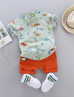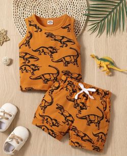 Boys 2pcs Dinosaur Print Shirt & Elastic Waist Orange Shorts $7Apple Valley, CA