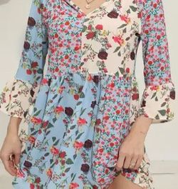 Floral Print Light Blue V Neck Dress $8Apple Valley, CA