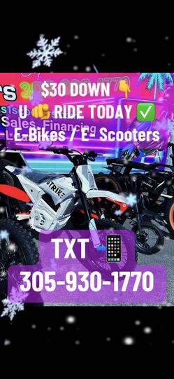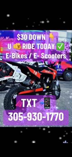 E Bikes / E Scooters / E Dirt Bikes $30 Down Ride Now $30Central Fort Lauderdale, FL