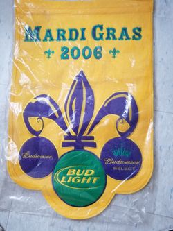 2006 Budweiser Bud light Mardi Gras Flag Purple Green Gold Felt $80Garden Grove, CA