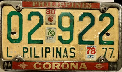 Philippines (Pilipinas) License Plate Vintage 1977$65Chicago, IL