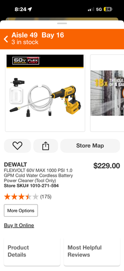 Brand New DeWalt FLEXVOLT 60V Power Cleaner – Tool Only$200Fort Myers, FL