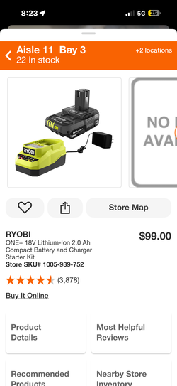 Brand New Ryobi ONE+ 18V 2.0Ah Battery & Charger Kit$85Fort Myers, FL