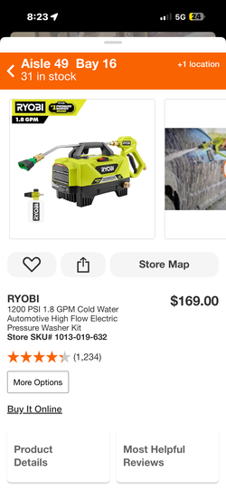 Brand New Ryobi 1200 PSI 1.8 GPM Electric Pressure Washer$145Fort Myers, FL
