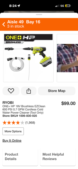 Brand New Ryobi ONE+ HP 600 PSI Cordless Power Cleaner – Tool Only$85Fort Myers, FL