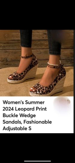 Women's Summer 2024 Leopard Print Buckle Wedge Sandals, Fashionable Adjustable$25Bakersfield, CA