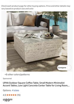 UPHA Outdoor Square Coffee Table, Small Modern Minimalist Accent Tables, Low Light Concrete Center Table for Living Room,...$99Corona, CA