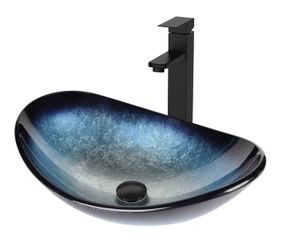 Bathroom Boat Shape Artistic Glass Vessel Sink Free Black Faucet and Pop-up Drain Set, Blue$49Corona, CA