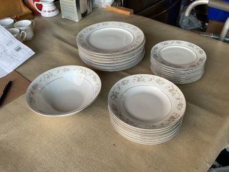 Service of eight persons set of 25 pieces Royal majestic 8078 fine china includes 10.5” eight dinner plates, 8” macaroni , salads eight plates, 7.625$100Lancaster, CA
