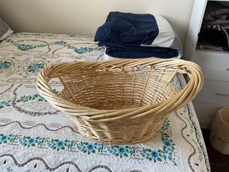 a woven wicker / rattan serving basket, commonly used as a bread basket or fruit basket for a table centerpiece. It’s hand-woven from wicker or rattan$7Lancaster, CA