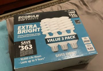 Ecobulb Soft white Extra Bright Value 3 Pack 150 W Replacement Uses Only 40 Watts Light Output 2650$12Lancaster, CA