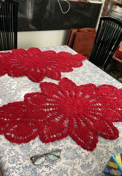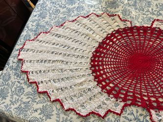 Elegant oval handmade crochet doily cotton red and nylon yarn$45Lancaster, CA