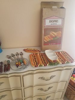 Vintage Hot Dog Platter, marble cheese board and utensils$35Las Vegas, NV