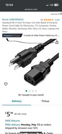 Standard Power Cables . Qty: 10$5Downey, CA