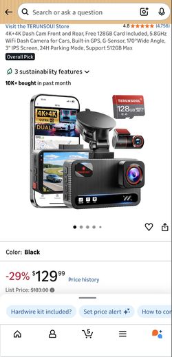 4K Dash Cam Front and Rear with GPS, Upgraded 5.8G WiFi, Dual Dash Camera for Cars, Night Vision, WDR, 160°Wide Angle, 24H Parking Monitor, Emergency $49Lombard, IL