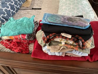 Whole bag of really nice ladies tops (2x), one skirt (3x) , and brand new pool shoes$20Katy, TX