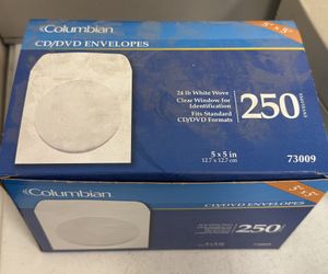 Columbian CD/DVD Envelopes - 250 envelopes, 24 lb white wove, clear window, fits standard CD/DVD formats$10Katy, TX