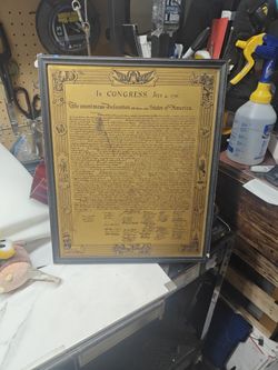 VINTAGE FRAMED ETCHED BRASS DECLARATION OF INDEPENDENCE