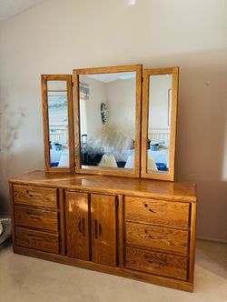 Great condition! Oak wooden Dresser with mirror: 67”wide*31”tall*16.5”wide $245Peoria, AZ