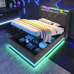 Twin Size Lift Up Storage Bed Frame with 360 Surround LED Lights with Upholstered Headboard$250Artesia, CA