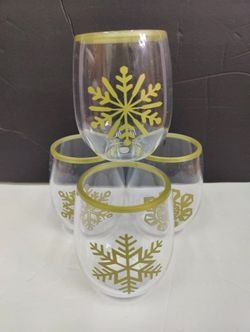 Set of 4 Threshold stemless wine glasses with gold snowflake design decoration$10Los Angeles, CA