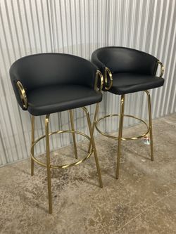30” Fixed-Height Bar Stools – Set of 2 (Black Faux Leather & Gold Metal)$145Des Plaines, IL