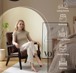 Accent Chair Mid Century Modern Armchair with Lumbar Support Pillow Wood Legs PU Leather Upholstered Lounge Chairs Comfy High Back Cushion for Living $100Montclair, CA