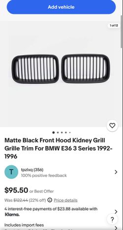 Matte Black Front Hood Kidney Grill Grille Trim For BMW E36 3 Series 1992-1996$30Montclair, CA