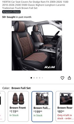 YIERTAI Car Seat Covers for Dodge Ram Fit 2009-2026 1500 2010-2026 2500 3500 Classic Bighorn Longhorn Laramie Tradesman Truck Brown Full Set$80Montclair, CA