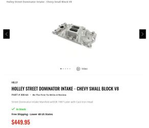 Holly Street Dominator Intake For Chevrolet 350$250San Antonio, TX