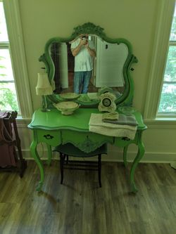 Green Antique Victorian Vanity Table With Mirror$250Rosedale, LA