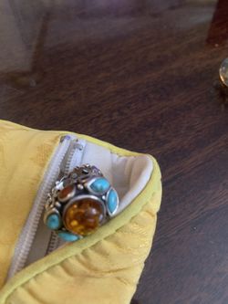 Sterling Silver Ring With Center Amber Stone and Turquoise And Turquoise Accent Stones. $119Lowell, MA
