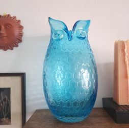 MCM Large Blue Honeycomb Art Glass Owl Vase$50Los Angeles, CA