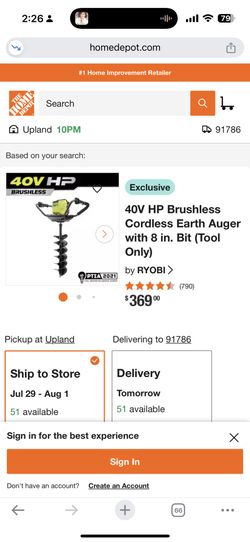 Ryobi 40v HP Brushless Cordless Earth Auger $300Pomona, CA