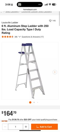 Louisville 6ft Aluminum Step Ladder With 225lbs$100Pomona, CA