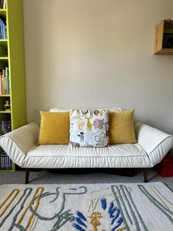 Addison House White Leather Futon Daybed Adjustable Rest Wooden Legs Sleeper Sofa$160Hollywood, FL