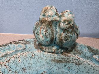 Rustic Turquoise Crackle-Glaze Bird Bath Bowl – Cottage Garden Décor