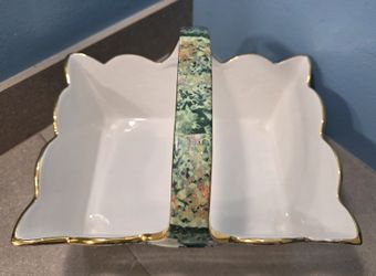 Italian Porcelain Decorative Basket – Hand-Painted Garden Motif, Gold Trim, Made in Italy$25Mesquite, TX