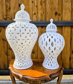 BridgeBlue Prototype White Pierced Ceramic Urns – Designer Sample Pair$126Mesquite, TX